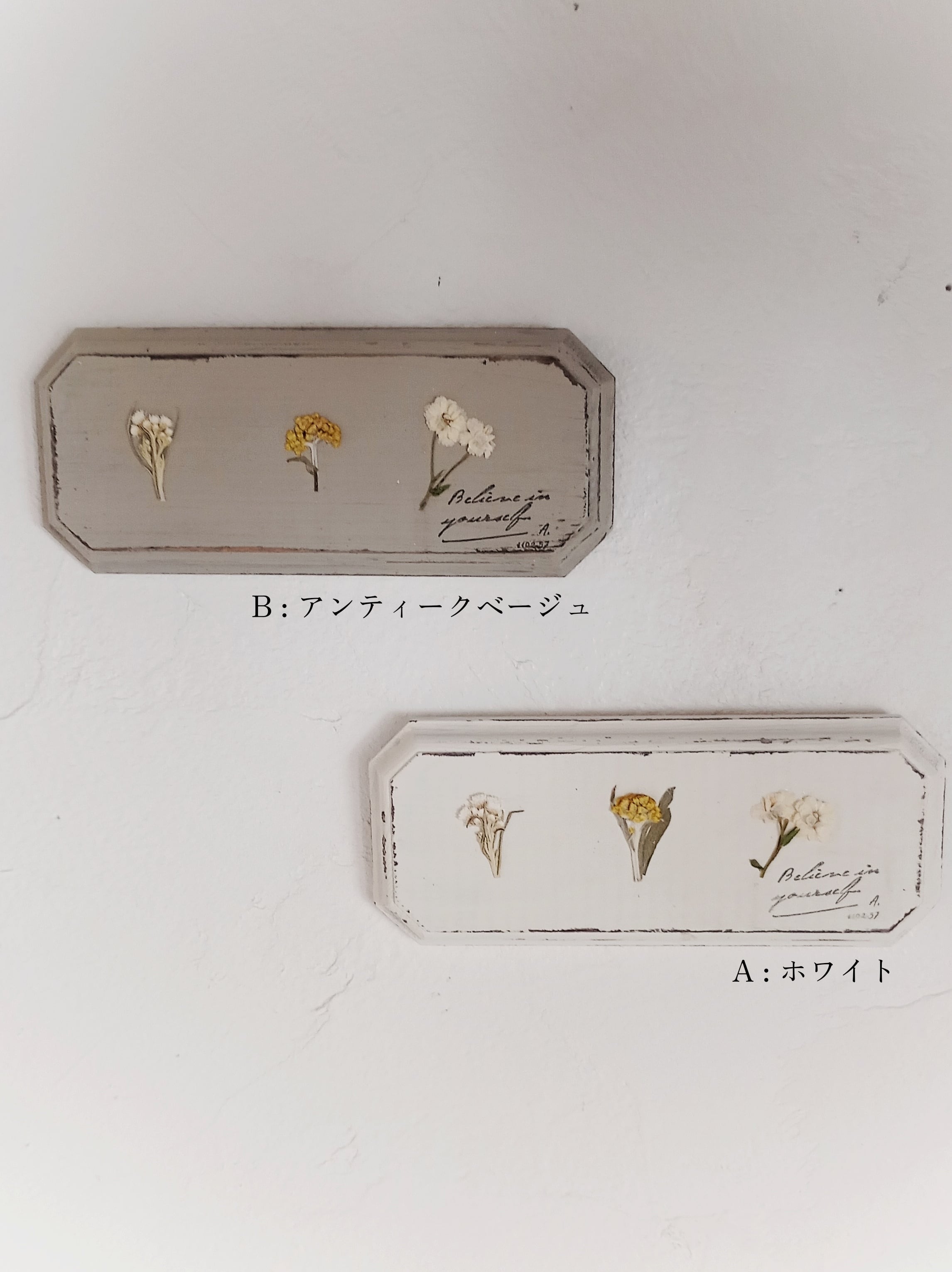 小さなかわいいお花の押し花をあしらった上品なアンティーク風のプレートです。