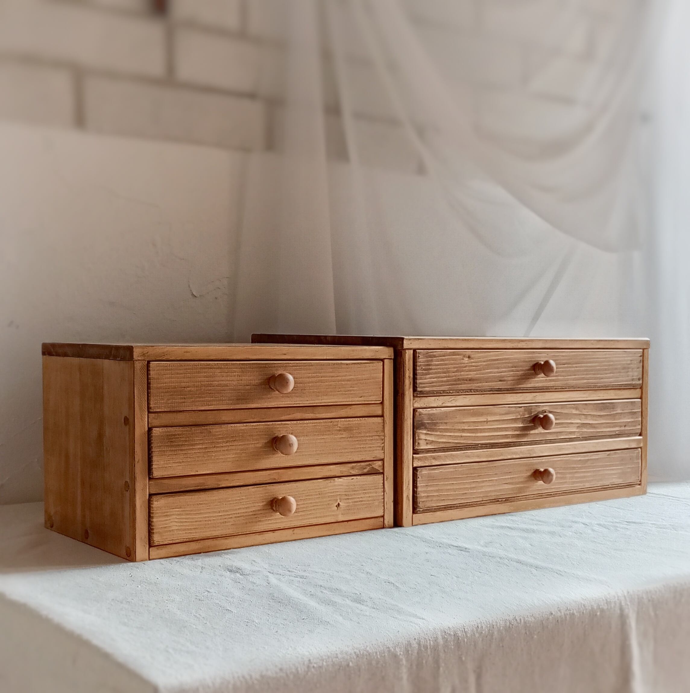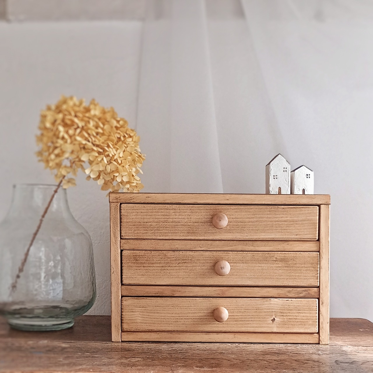 ✓ A4ファイルがぴったり入る、アンティーク調の小引き出し(3段タイプ)。