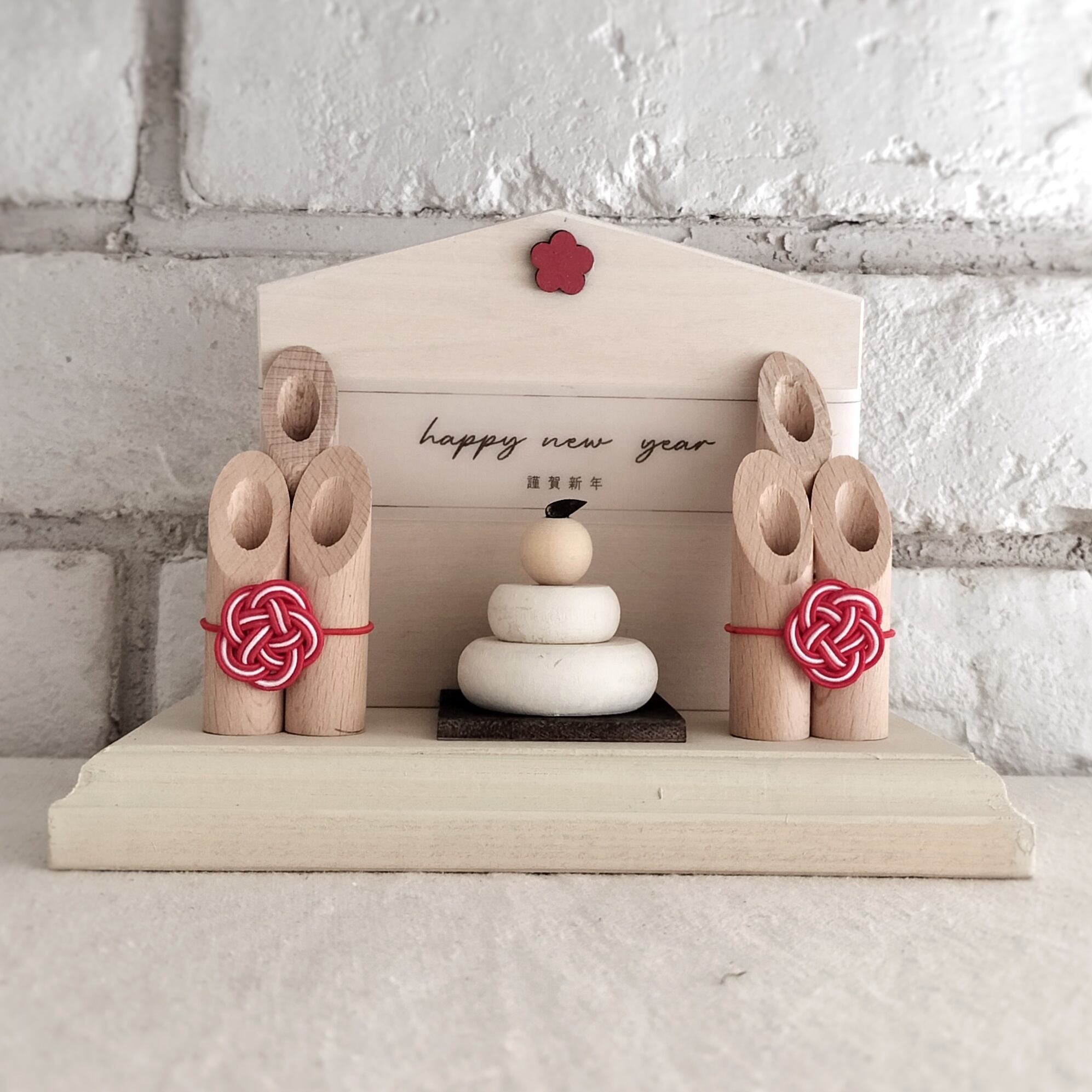 木のお正月かざりセットは、新しい年を祝うためのシンプルで美しいインテリアアイテムです。